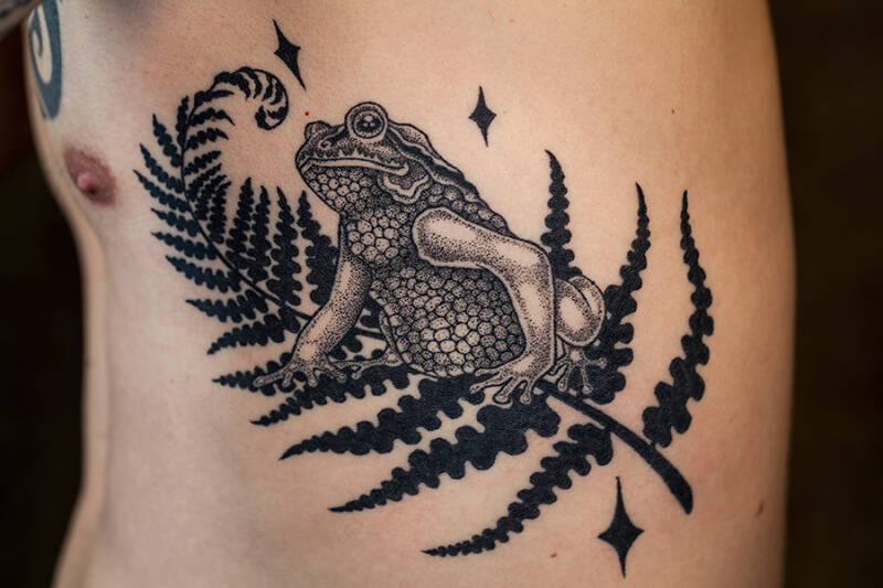 Letzten Mai habe ich an einem Tattoo Circus mitgemacht. Ein Soliprojekt für anarchistische Gefangene. Tattoo Termine wurden im Vorfeld über Mail abgemacht, als ich dann die Anfrage für dieses Projekt gekriegt habe konnte ich mein Glück kaum fassen. Ein Frosch uuuuund als Stilbeispiel meine Zeichnungen! Suuuper coool.. Ausser.... ja die Stelle;) da diese Platzierung für Kunde und tätowierende Person mühsam ist haben wir den Frosch Ende letzten Sommers fertiggestellt. Gerne mehr solche Sachen, am liebsten zeichne und tätowiere ich Tiere und Pflanzen. Die Welt ist so hässlich lasst uns doch das schöne feiern!